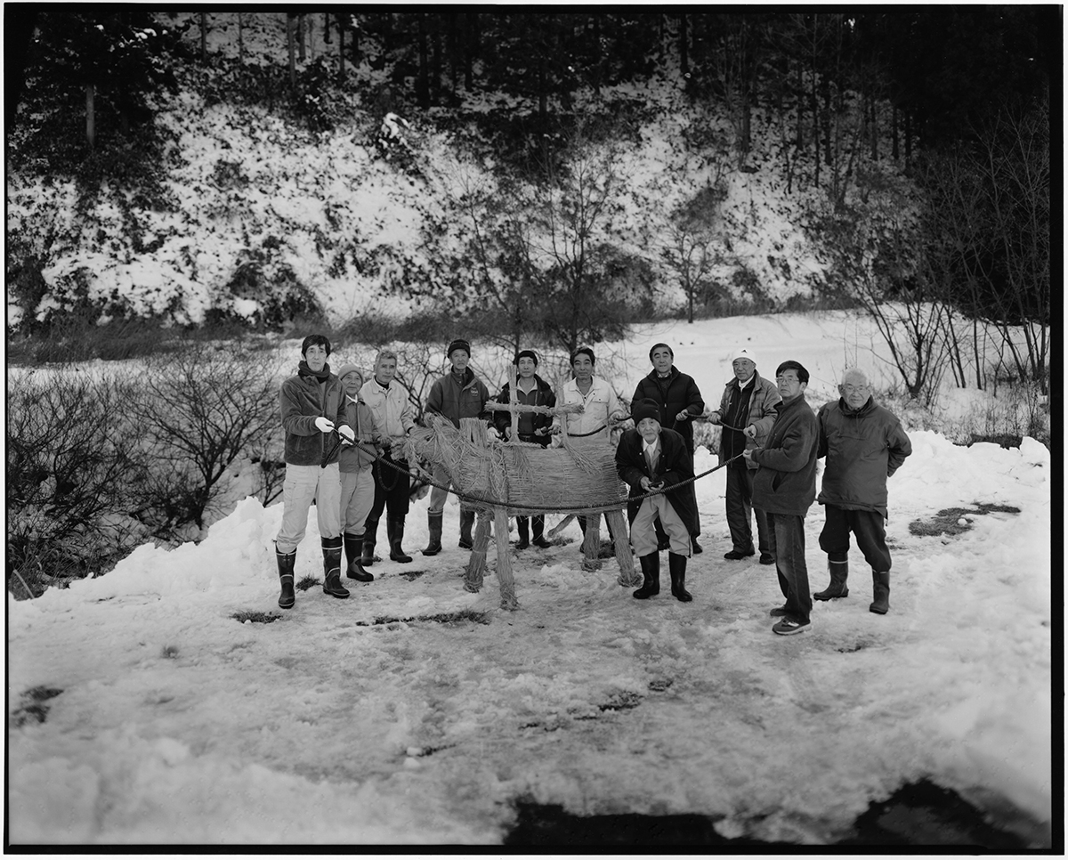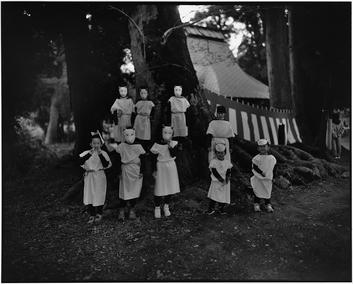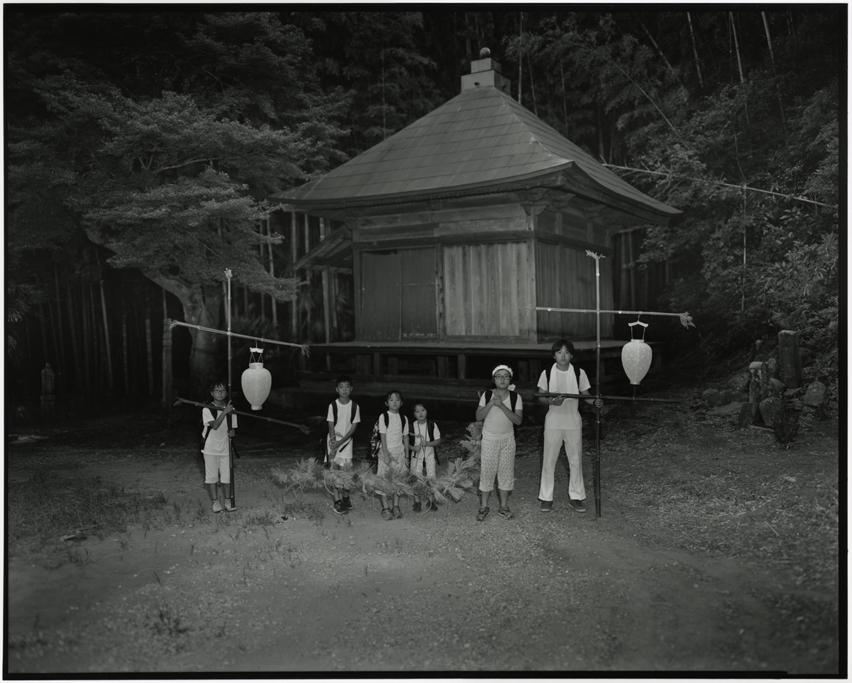 But on certain days, a traveling kamishibai storyteller would visit the grounds of the neighborhood Fudo temple, which was always deserted except for the two festivals that took place each year. We called the storyteller Old Man Thunder, although I'm not sure why. I seem to remember that storytellers in other towns announced their arrival to the children by clapping wooden blocks together, but Old Man Thunder used a taiko drum. Maybe that's where the name came from. Children who had enough pocket money to buy a sembei cracker or mizuame candy on a bamboo stick—about five or ten yen—could come and sit and listen to his stories.