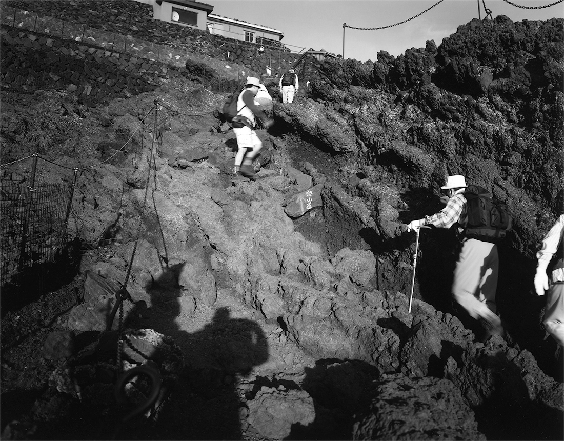 遠くから望む富士山は八面玲瓏、優美で類なく美しく、まさしく掛け値なしの不二の山です。富士山を経って関八州、江戸八百八町の人々が、それぞれの土地から望むお山を、お富士さん、富士様と親しみを込めて詠んでいたやさしい姿です。そんな富士山に、ここ数年夏の行事として若い友人達を誘い、一夏に二度、富士行を慣行しています。毎度のことですが、下山して疲労困憊もう次は無しと決めてしまいます。しかし一週間程過ぎると又、あのお山の懐がなぜか恋しくなるのです。六根清浄お山は晴天と、金剛杖をつき鈴を鳴らして登る富士講の人々はめっきり減った様です。ある年のこと高齢の大先達に出会い、問いました。すると彼は「六根清浄とは人間の大切な知覚をいい、眼、耳、鼻、舌、身、意、のすべてを清浄して登っているのだから、晴天で良い登山が出来ますようにと、お山に声をかけて祈りながら登るのです。」とひとりごとのように応え、この山中響きわたる様な涼しげな鈴の音を残して、頂きの鳥居に向かって歩を進めて行きました。