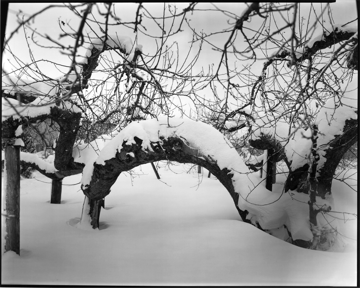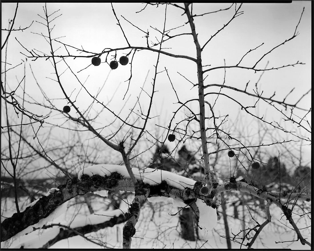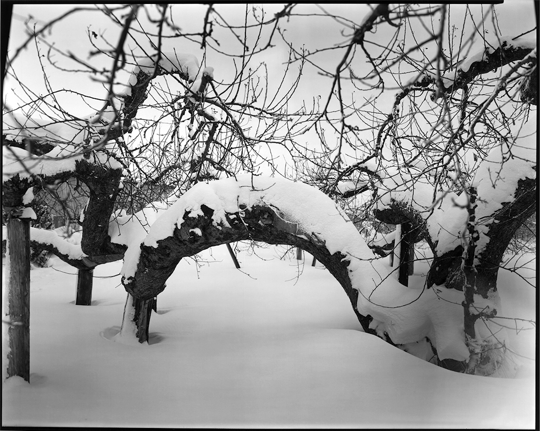リンゴの土地までは凡そ七百キロ。この道程は大雪に見舞われていた。シベリアからの寒波が張り出して来ているらしい。峠を過ぎ高低が下がると、圧雪の道路に気を使い、いつものハンドルの握りより心なしか慎重だ。これが堪らなく心地よい、ふと気がつけば曲はいつものNeil Young。そして一人はにかみ車を走らせる。着いた所には肩まで雪で埋もれた、百回以上実を実らせたリンゴの樹が耐えている。