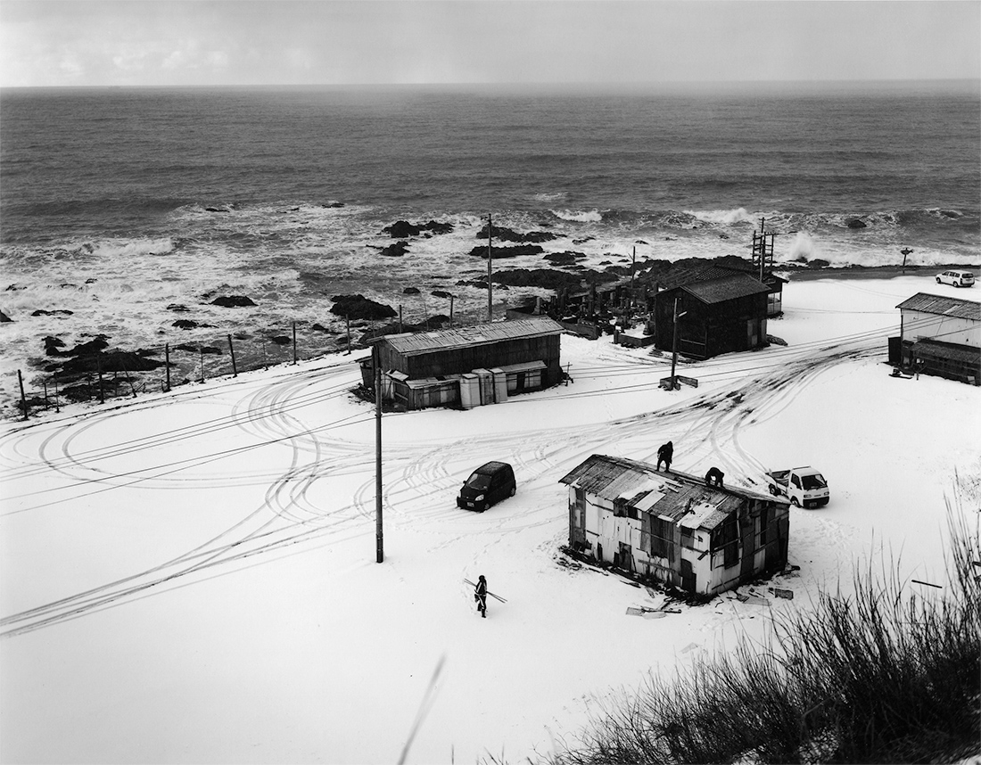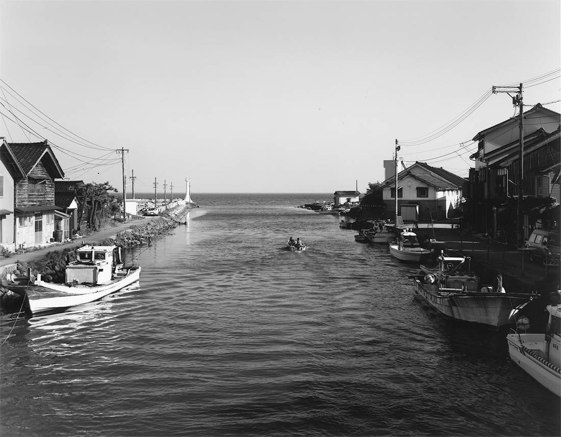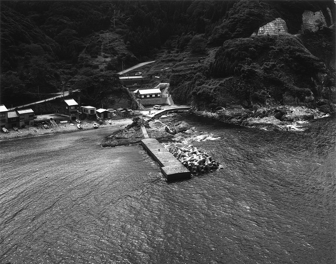 It is said that in ten years a lot of things change. Accordingly, a story of twenty years ago sounds like a once-upon-a-time. I challenged myself to drive along Japan’s coasts, trying to take the routes as close to the beach as possible. I think it was around that time when I made the switch from using a 6x6 camera to an 8x10. I remember the trip took an enormous amount of time. I had to divide it into individual trips over the span of three or four years. The negatives from the trip are now lost, probably because at the time I thought it was an impossible task. However, those forever changing sceneries from the past became the standard perspective to which I began to have of these lands.The fisherman's village was far from the main road: positioned so that it appeared to cling to the back of a hill which held a shrine midway down the cliff with a tiny unpaved road leading to the seashore that was often pounded by rough waves in the winter. The first time I visited the port the sun was setting behind the seawall, and it hid and peaked between the clouds. How could I have known the name of the place then? I encountered children coming back home from school, with a huge rock enshrined in front of the port as the background. The sun had set and I left. How many times in twenty years did I stop at this place? The second time was around when the road was finally paved between the beach and the houses. There was a small hand-cut path which lead to the next town, but by then it was excavated. The third time was near the beginning of winter with soft sleet dancing at times in the air. Down at the seaport where the boats were prepared for fishing they were working on a new seawall, huge cranes roaring in the blasts of wind that came and went. The next time I went to the port, there were much larger, polished vessels seemingly more proud than before. The market place had moved as well. For the past several years, I have stopped by more often because I was making trips to the sea. On my way home from up north, I realized that there was now a little shop that sold marine products at the foot of the seawall. There were banners boasting a grand bargain sale which fluttered in the wind and a miniature sign that said Fisherman’s Wharf hung atop the aluminum sash door.Something that I always think as I travel: has something changed? Has anything changed? Or have I changed? Maybe nothing has changed at all. There is the sea.There is the port. There are the boats and the houses. And there is the huge rock and hill constantly watching over it all.
