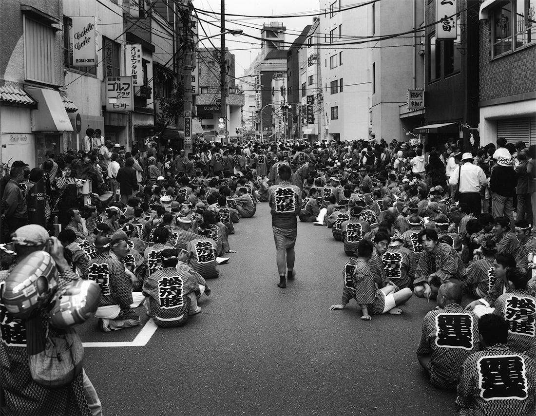 私の写真は旅から生まれます。普段の撮影旅行はある地域を一、二週間、ある時は一ヶ月と時間をかけて旅に出かけます。私の撮影は長い旅ばかりではありません。時には、多摩川や江戸川の橋を渡らない23区内の一日旅撮影に出かけます。それは季節の変わり目だったり、古い建築物が建て替えられると聞いたり、気になる歳時記だったり、千差万別です。東京の隣町で生まれ、物心付いた頃から足繁く通い、今は大分長く住み着いた東京は私のもう一つの旅の目的地なのです。江戸の古い名前をのこす日本橋から放射状に延びる街道、内掘、外堀通りからはじまる波紋のように広がる環状の各通り等は、推そらくすべて見知っている事でしょう。この一日旅撮影はこの知り尽くした東京で、旅人になる事なのです。その日の方角は機材を積み込んでいる時に決まります。そして街並から町に入って行くのです。まず信号を右折して次の交差点を左折して又次の十字路を右折して。これを二度程繰り返せば、もうそこは普段の旅で出会う思いも依らないいつもの町角です。そしては期待にふくらむ旅人になるのです。