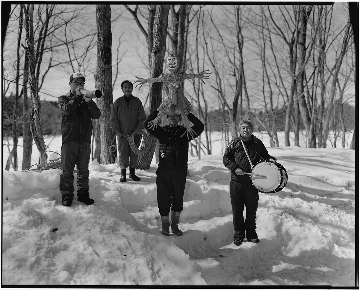 But on certain days, a traveling kamishibai storyteller would visit the grounds of the neighborhood Fudo temple, which was always deserted except for the two festivals that took place each year. We called the storyteller Old Man Thunder, although I'm not sure why. I seem to remember that storytellers in other towns announced their arrival to the children by clapping wooden blocks together, but Old Man Thunder used a taiko drum. Maybe that's where the name came from. Children who had enough pocket money to buy a sembei cracker or mizuame candy on a bamboo stick—about five or ten yen—could come and sit and listen to his stories.