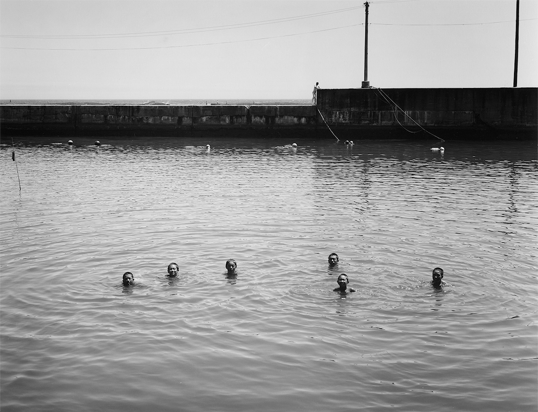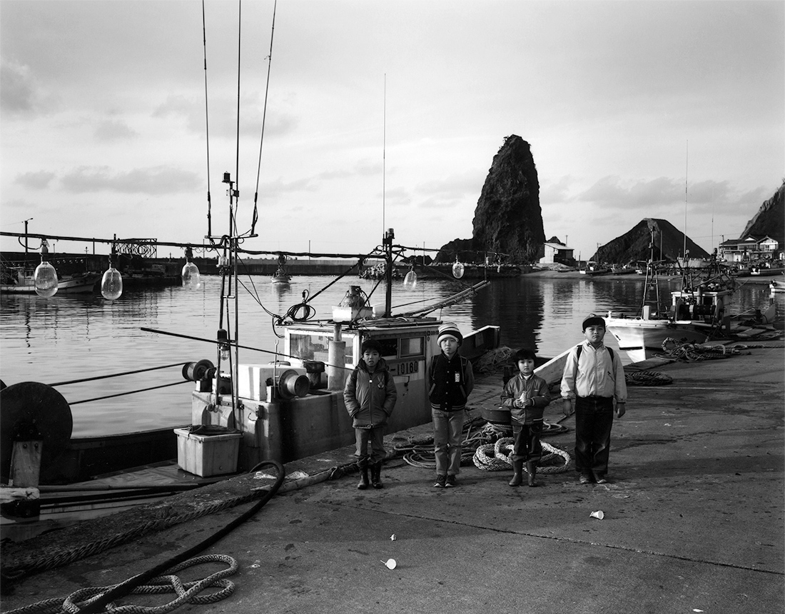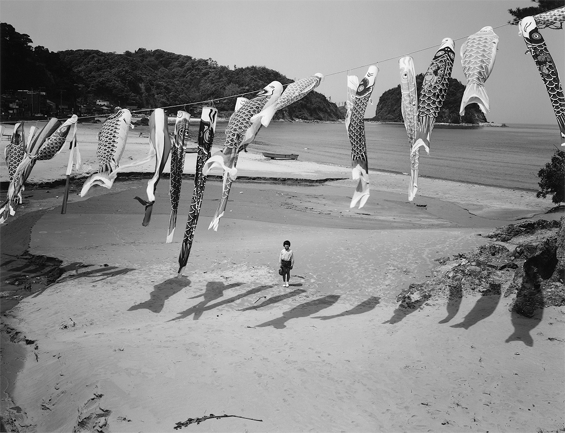 The hazy horizon stretches endlessly beyond the breakwater. There, I had just seen a sailor in blue shirt, hastily preparing for departure on a deck. Sailing away, the foreign ship eventually became small as a dot, as if it were being swallowed by the sea. The bus halted at the stop in front of a variety store, where three vending machines stood side by side. No one got off. The bus started moving again, turned the corner of a cross section and disappeared into the scene of the neighborhood . A man with a straw hat, tied with a towel , approached on a bicycle from the small pass leading to a pine wood. The rhythm of his pedaling feet was strangely synchronized with the splashes of the waves against the beach, where fish nets hung to dry. There was no one to be seen at the rather small fish market. A gash of wind hurled a styrofoam box for the fish, making it disappear into the bottom of a half-painted boat which was on the shore fore repairs. I guessed there had been a festival , because a "torii " (a gateway at the entrance to the Shinto shrine) with a brand new "shimenawa" (an ornament for "torii")was visible. By its side, there stood a mercury lamp, forgotten to be turned off. On top of its rusting pole, the lamp was burning dull and white as if were being bullied by the sunlight. About an hour passed. I heard a small sigh, coming from the opposite bench from where one could get a full view of the sea and the city. A little while ago, when I had reached the lighthouse at the top of a cape, after climbing a long stairway, I had met a boy in a white open-necked shirt, holding a sketch book with a few lines drawn, under his arm. He had told me not to look until it was finished. I stepped over the white chain with many coats of paint on it, and peeked quietly. There, the boy was standing proudly with his picture, which looked as if the lighthouse had cast its shadow on the sketchbook.