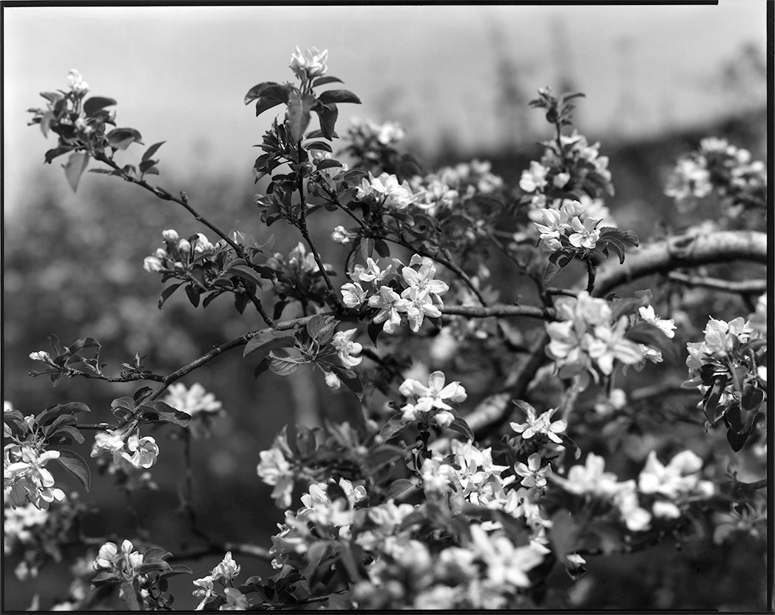 Time of the season when the apple flowers blossom, I start a journey to the North. Those apple petals are light and dainty. The buds tint to subtle pink; when they bloom, the flowers turn pure white. The ground of the orchard is covered with soft, green grass and dandelions pop out from earth. Apple flowers filling the hill sparkle brightly as the clouds on top of Ajara Mountain fade and the sun shines on top of them.