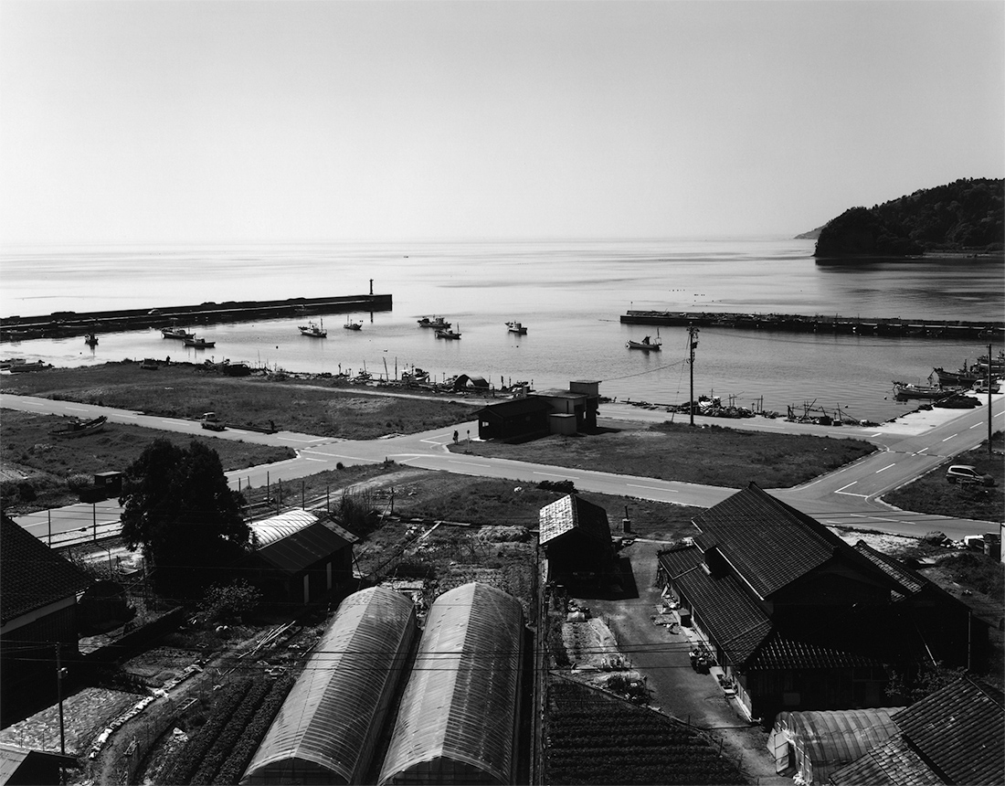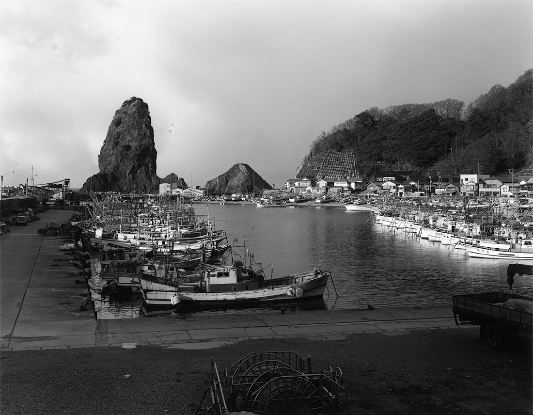 It is said that in ten years a lot of things change. Accordingly, a story of twenty years ago sounds like a once-upon-a-time. I challenged myself to drive along Japan’s coasts, trying to take the routes as close to the beach as possible. I think it was around that time when I made the switch from using a 6x6 camera to an 8x10. I remember the trip took an enormous amount of time. I had to divide it into individual trips over the span of three or four years. The negatives from the trip are now lost, probably because at the time I thought it was an impossible task. However, those forever changing sceneries from the past became the standard perspective to which I began to have of these lands.The fisherman's village was far from the main road: positioned so that it appeared to cling to the back of a hill which held a shrine midway down the cliff with a tiny unpaved road leading to the seashore that was often pounded by rough waves in the winter. The first time I visited the port the sun was setting behind the seawall, and it hid and peaked between the clouds. How could I have known the name of the place then? I encountered children coming back home from school, with a huge rock enshrined in front of the port as the background. The sun had set and I left. How many times in twenty years did I stop at this place? The second time was around when the road was finally paved between the beach and the houses. There was a small hand-cut path which lead to the next town, but by then it was excavated. The third time was near the beginning of winter with soft sleet dancing at times in the air. Down at the seaport where the boats were prepared for fishing they were working on a new seawall, huge cranes roaring in the blasts of wind that came and went. The next time I went to the port, there were much larger, polished vessels seemingly more proud than before. The market place had moved as well. For the past several years, I have stopped by more often because I was making trips to the sea. On my way home from up north, I realized that there was now a little shop that sold marine products at the foot of the seawall. There were banners boasting a grand bargain sale which fluttered in the wind and a miniature sign that said Fisherman’s Wharf hung atop the aluminum sash door.Something that I always think as I travel: has something changed? Has anything changed? Or have I changed? Maybe nothing has changed at all. There is the sea.There is the port. There are the boats and the houses. And there is the huge rock and hill constantly watching over it all.